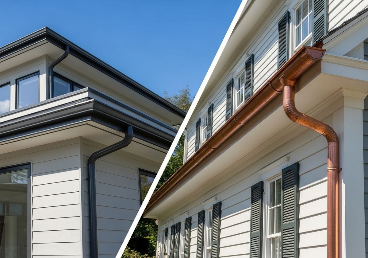 When it comes to materials, we specialize in both seamless aluminum gutters and copper gutter systems, each offering its own distinct benefits: